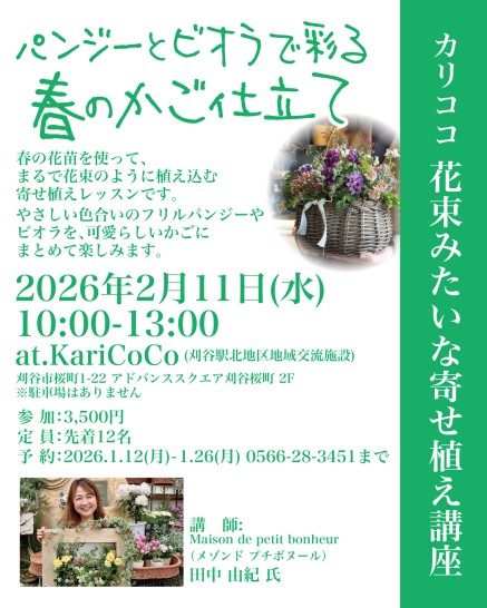 カリココ 花束みたいな寄せ植え講座~パンジーとビオラで彩る春のかご仕立て~